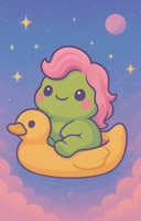 A pastel cosmos of kute signs & cozy dreams, Meet Fruffy the PinkTuft Frog