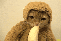 cat eating a banana dressed as a banana