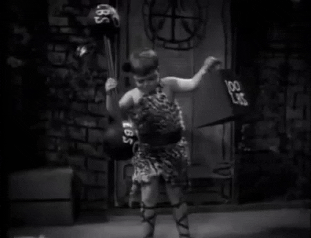 This GIF has everything: comedy, vintage, weight lifting, SPANKY!