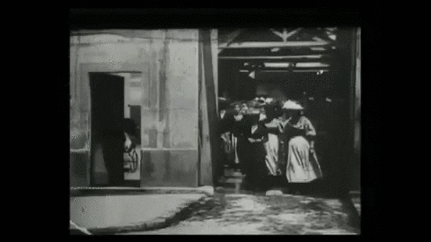 workers leaving the lumiere factory